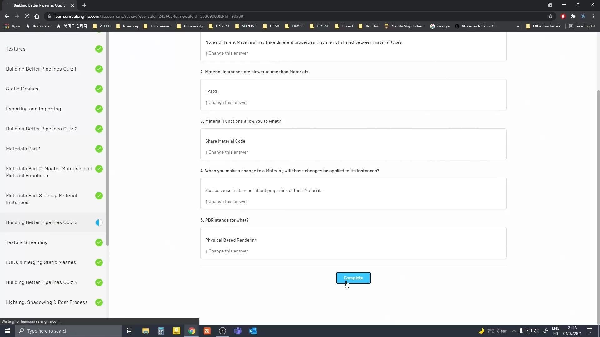 따라하는 사람이 그냥 멍때리면서 보고 대충 넘기지 않게 틈틈히 퀴즈도 적절히 배치해두었습니다. 이 퀴즈를 제대로 안풀면 코스완료가 안되고 완료시에 받는 배지를 못받습니다. 배지 뭐 실질적으로는 별 의미 없지만 못받으면 뿌듯함이 덜해집니다.
