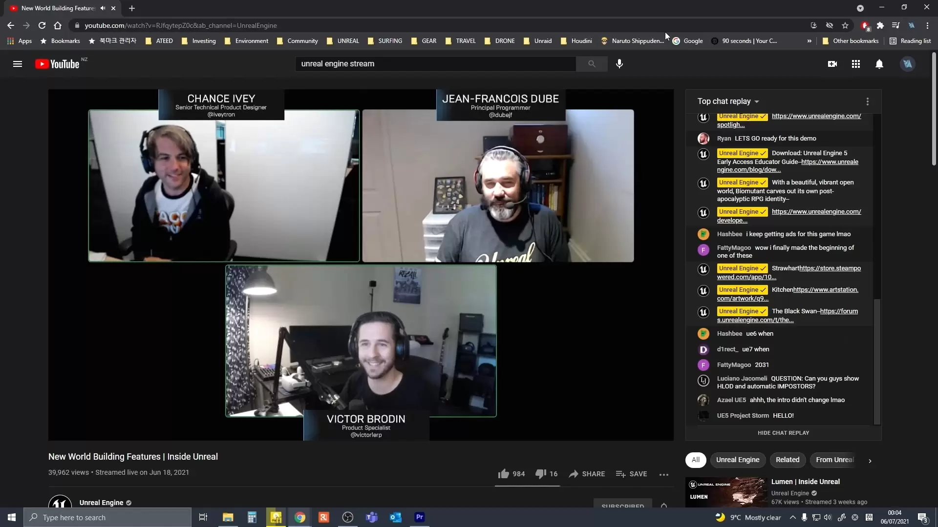 에픽게임스에 일하는 전문가들이 이렇게 실시간으로 주제를 정해서 장시간 강의 해주는 일도 자주 있습니다. 질문도 받고 답해줍니다