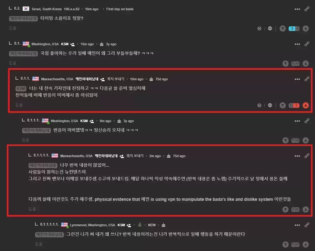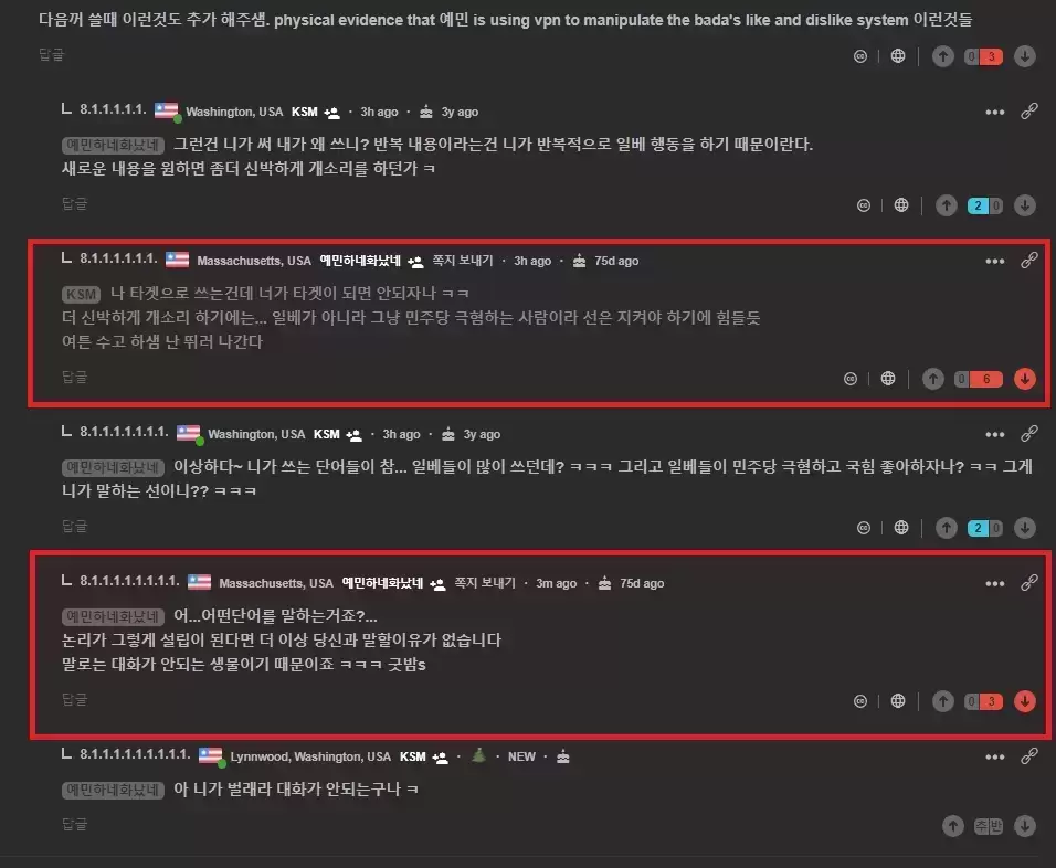 오늘도 혼자 열심히 댓글 싸움하는 예민이