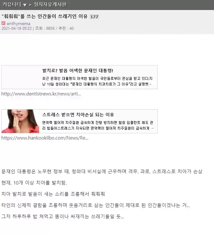 저 글 출처는 디씨임 ㅋㅋㅋ 디씨에서 조차 보수냐 진보냐 확실하지 않다는데 혼자 낙인 찍고 있네? ㅋㅋ